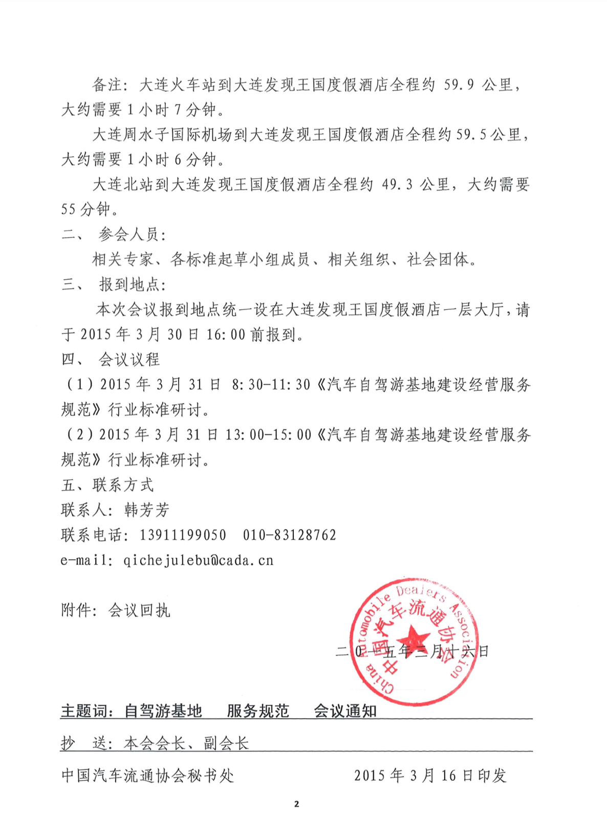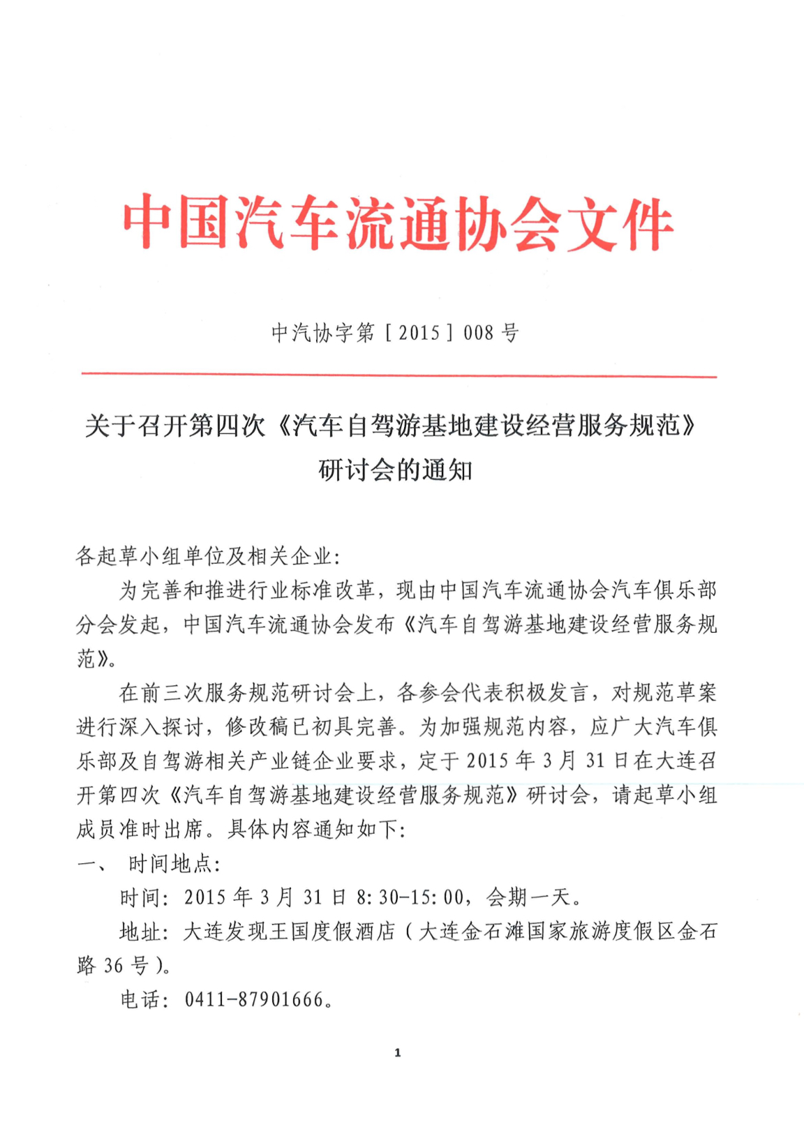 关于召开第四次汽车自驾游基地建设经营服务规范的通知