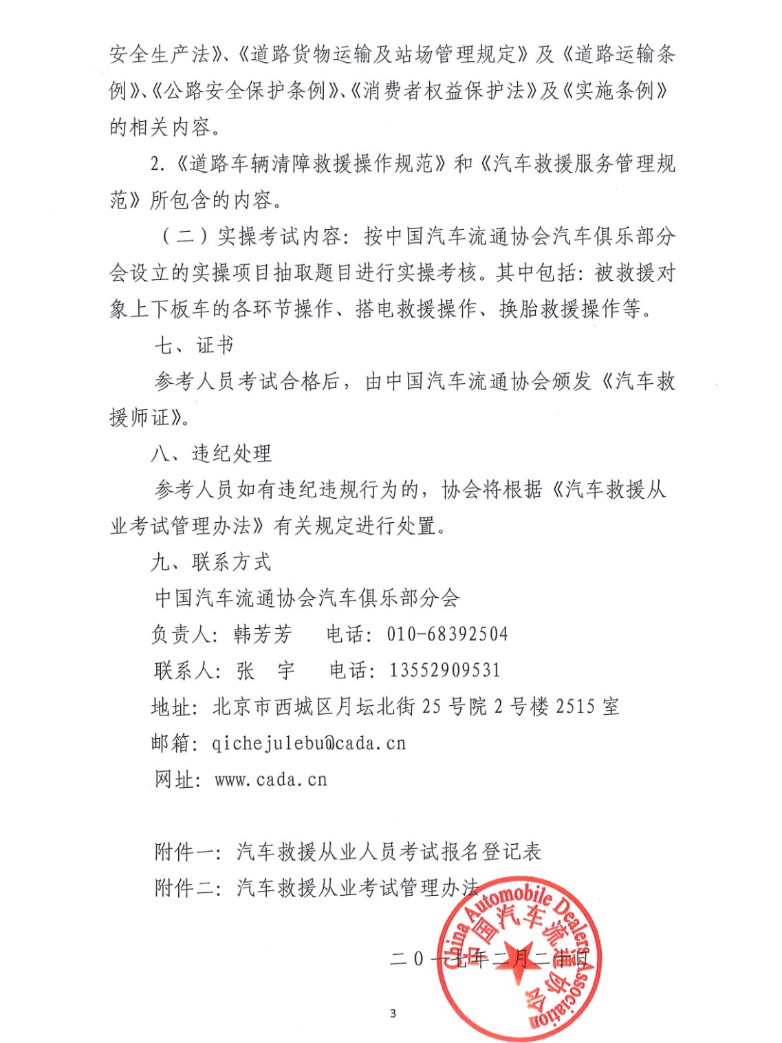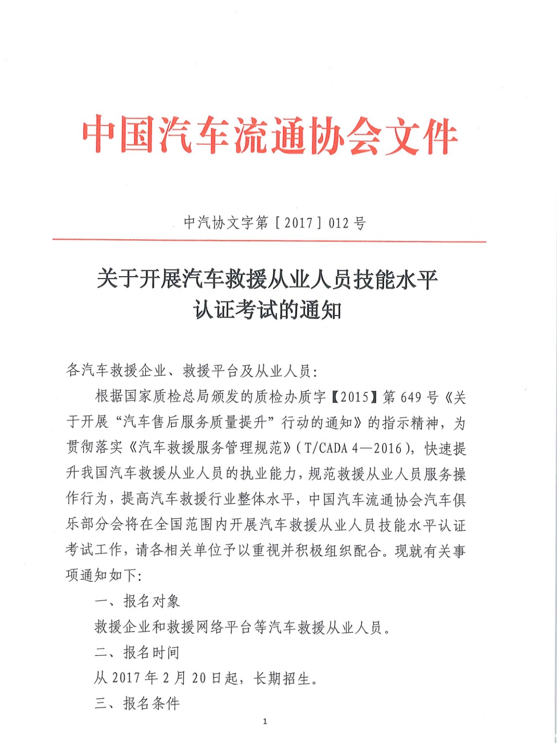 关于开展汽车救援从业人员技能水平认证考试的通知