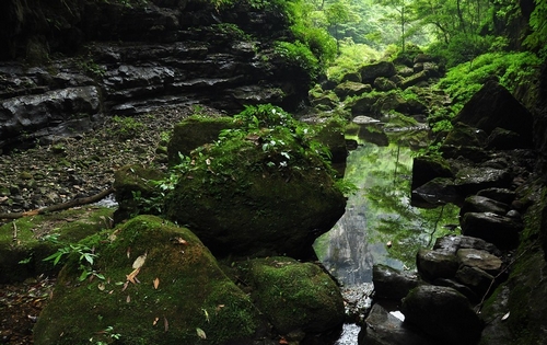 南津关大峡谷位于宜昌西陵峡的深山里,是虎牢溪的源头,属于封闭的原生态峡谷环境,峡谷全长12公里,谷内飞瀑成群,森林密布幽深奇特,自成小气候体系,典型峡谷气候孕育了南津关大峡谷绝美的自然景观。因为进山的盘山路很狭窄,而且路面状况非常差,中大型车辆根本就不能进山,只有当地的班车一天两班进出,所以这么绝美的峡谷不太为外人所知。