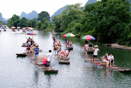 下午安排:中餐后之后游览小漓江之称的【遇龙河漂流】没有大江大河的刺激,却多了一份悠闲,静静的坐在竹排上观赏两岸的美丽幽静的风景。