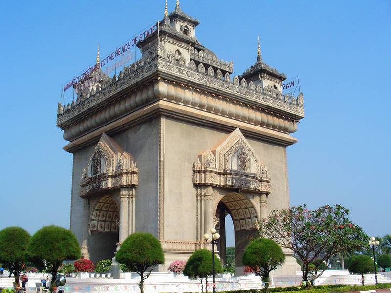 第五天前往万象,游香昆寺、老泰友谊大桥、凯旋门、老挝特色市场——达拉少。晚上参观湄公河畔。