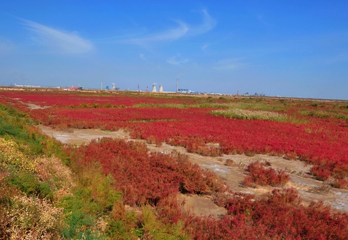 20万亩畜牧草,10万亩速生林,13万亩人工柽柳林,50万亩人工芦苇与黄河口湿地的自然植被浑然一体,共同构筑起一道靓丽的绿色生态景观线。自2000年以来,黄河河务管理部门在黄河来水持续偏枯的情况下,实施黄河水量科学调度,使得黄河口湿地生态系统得到水源补给,湿地生态的逐渐恢复,也为鸟类提供了大量的水草、野草、谷物、昆虫及水生动植物食物链,吸引了众多的珍禽候鸟,“天上有飞鸟,地上野兽跑,鱼虾水中跃,绿林随风拽,花儿竞相开”的自然画卷重现黄河口。