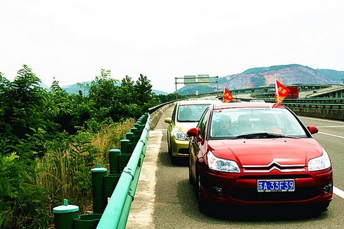 行驶途上发生了一些小插曲,有一辆车出了点问题。可是大家并没有埋怨,而是将车子停靠边上,齐心协力的帮助车主解决问题。好团结,好和乐啊。