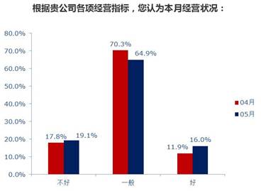 本月汽车经销商的经营状况一般,总体态势发展平稳。与4月车市相比,随着市场的逐步回暖,经营状况“一般”的企业从70.3%降至64.9%;经营状况“好”的比例略有增长从上月的11.9%增至16.0%;经营状况“不好”的比例从上月的17.8%增至19.1%。