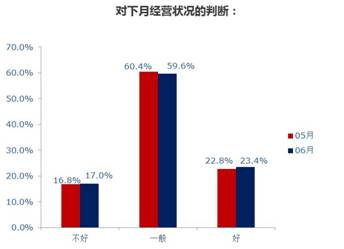 调查结果显示,经销商认为2013年6月经营状况“一般”的经销商最多,占59.6%。经营变“好”的比例从22.8%微增至23.4%,经营“不好”的比例略有增加,为17.0%。