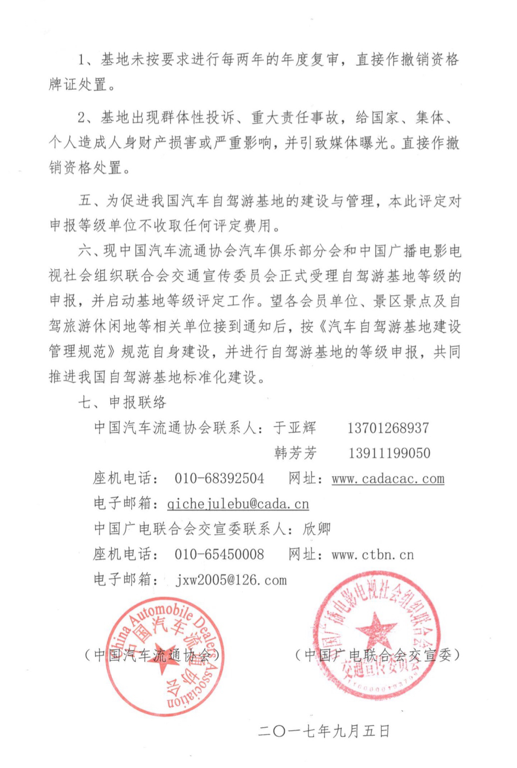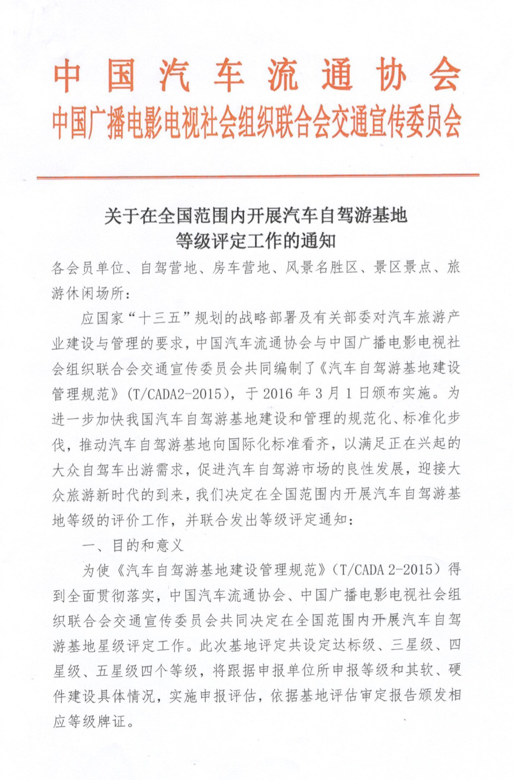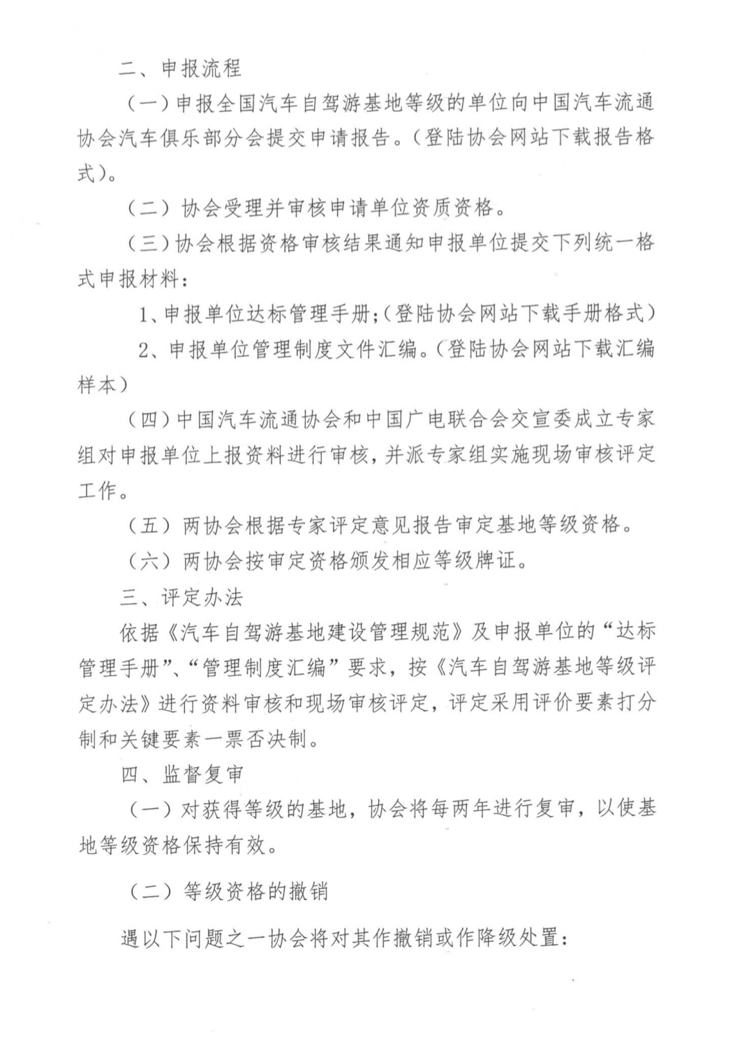 关于在全国范围内开展汽车自驾游基地等级评定工作的通知